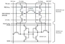 nvSRAM is a type of non-volatile random-access memory (NVRAM).[1][2] nvSRAM extends the functionality of basic SRAM by adding non-volatile storage such as an EEPROM to the SRAM chip. In operation, data is written to and read from the SRAM portion with high-speed access; the data in SRAM can then be stored into or retrieved from the non-volatile storage at lower speeds when needed.