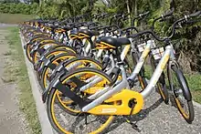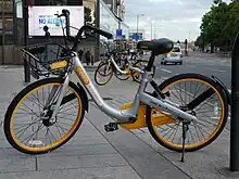 oBike was a Singapore-registered stationless bicycle-sharing system started by businessmen Shi Yi and Edward Chen with operations in several countries. The bikes have a built-in Bluetooth lock and can therefore be left anywhere at the end of a journey, not just at a docking station. Users use a smartphone app to locate and rent bikes. It launched in Singapore in February 2017, and ceased operation on 25 June 2018 in Singapore. Subsequently, the parent company filed for insolvency in its home market.[3][4] The effect on operations outside of Singapore is unknown.[5]