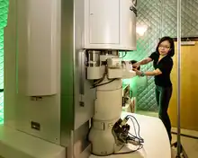 The Fusion Energy Division pursues short-term goals to develop components such as high-temperature superconductors, high-speed hydrogen pellet injectors, and suitable materials for future fusion research.[38][39] Much research into the behaviour and maintenance of plasma takes place at the Fusion Energy Division to further the understanding of plasma physics, a crucial area for developing a fusion power plant.[38][39] The US ITER office is at ORNL with partners at Princeton Plasma Physics Laboratory and Savannah River National Laboratory.[40] The US contribution to the ITER project is 9.1% which is expected to be in excess of US$1.6 billion throughout the contract.[41][42] ORNL researchers participated in developing of an extensive research plan for the US-ITER collaboration detailed in 2022.[43]