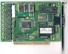 OTI087 - ISA SVGA chipset, and one of the first VLB chipsets available. Has a 16-bit external data path, and a 32-bit internal memory controller data path. It features an improved, local-bus compatible host interface controller with read and write caching capabilities similar to those implemented on Tseng ET4000AX graphics chips, along with register-based color expansion, color fill, 16-bit graphic latch and some other new (for its time) features.[9] Maximum BIOS resolutions are 1024x768x256 non-interlaced and 1280×1024×256 interlaced. Maximum dot clock is 80 MHz, but is usually coupled with the OTI068 clock generator capable of frequencies up to 78 MHz. This chipset supports up to 2MB of 70/70R ns DRAM.