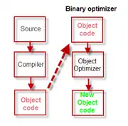 An object code optimizer, sometimes also known as a post pass optimizer or, for small sections of code, peephole optimizer, forms part of a software compiler. It takes the output from the source language compile step - the object code or binary file - and tries to replace identifiable sections of the code with replacement code that is more algorithmically efficient (usually improved speed).