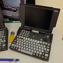 When it made its debut in 1992,[1] this model realised the idea of a laptop that was smaller (having the same footprint as an A5 sheet) and lighter (1 kg) than contemporary laptops. The first version did not have the expected success, despite having an excellent processor and also features unknown to its contemporaries, such as the microphone and integrated amplifiers. This failure was mostly due to the limitations of the operating system and bundled software which did not fully exploit the potential of the computer's design and capabilities. For this reason, Olivetti decided to present a new version just one year after the first, the Quaderno 33, equipped with the Windows 3.1 operating system.[2]