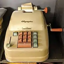 Acquisitions provided another avenue for Olympia-Werke's expansion during the Wirtschaftswunder. In 1957, Olympia-Werke took majority stake in the adding machine and cash register maker Brunsviga Maschinenwerke in Braunschweig. Two years later, Olympia-Werke acquired Brunsviga Maschinenwerke in its entirety. The manufacturing of Olympia cash registers was then relocated to Braunschweig. Focus turned to the development and manufacture of four-function adding machines, with the Brunsviga name kept alive for these machines.