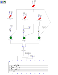 Programs in OpenMusic are created by connecting together (a process known as 'patching') either pre-defined or user-defined modules, in a similar manner to graphical signal-processing environments such as Max/MSP or Pd. Unlike such environments, however, the result of an OpenMusic computation will typically be displayed in conventional music notation, which can then be directly manipulated, if so required, via an editor. A substantial body of specialized libraries has been contributed by users, which extends OpenMusic's functionality into such areas as constraint programming, aleatoric composition, spectral music, minimalist music, music theory, fractals, music information retrieval, sound synthesis etc.