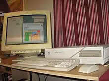 During the 1980s, DEC planned to replace the VAX platform and the VMS operating system with the PRISM architecture and the MICA operating system.[52] When these projects were cancelled in 1988, a team was set up to design new VAX/VMS systems of comparable performance to RISC-based Unix systems.[53] After a number of failed attempts to design a faster VAX-compatible processor, the group demonstrated the feasibility of porting VMS and its applications to a RISC architecture based on PRISM.[54] This led to the creation of the Alpha architecture.[55] The project to port VMS to Alpha began in 1989, and first booted on a prototype Alpha EV3-based Alpha Demonstration Unit in early 1991.[54][56]