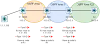 - Virtual links: The packets are sent as unicast. Can only be configured on a non-backbone area (but not stub-area). Endpoints need to be ABR, the virtual links behave as unnumbered point-to-point connections. The cost of an intra-area path between the two routers is added to the link.