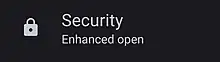 Screenshot of Android Wi-Fi configuration with the Security set to "Enhanced Open"