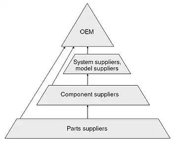 An original equipment manufacturer (OEM) is generally perceived as a company that produces parts and equipment that may be marketed by another manufacturer. The term is also used in several other ways, which causes ambiguity. It sometimes means the maker of a system that includes other companies' subsystems, an end-product producer, an automotive part that is manufactured by the same company that produced the original part used in the automobile's assembly, or a value-added reseller.[1][2]