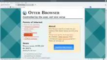 Otter Browser is a cross-platform web browser that aims to recreate aspects of Opera 12.x using the Qt framework.[2] Otter Browser is free and open-source software and is licensed under GPL-3.0-or-later. It works on Linux-based operating systems, FreeBSD, OpenBSD, macOS, Haiku, RISC OS, OS/2, and Windows platforms.