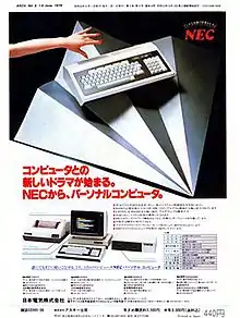 In Japan, Nippon Electric's Microcomputer Sales Section in the Electronic Device Sales Division released the TK-80 in 1976, a single-board computer kit, and it became popular among hobbyists. American personal computers were expensive for personal use (Initial list price of the Apple II was 358,000 yen, Commodore PET was 298,000 yen, and the TRS-80 was 248,000 yen).[15] In 1978, the Hitachi Basic Master and Sharp MZ-80K, both developed by consumer electronics companies, were released as personal computers targeted for hobbyists, not for business use.[16]