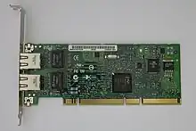 IBM was one of the (few) vendors which provided PCI-X 2.0 (266 MHz) support in their System i5 Model 515, 520 and 525; IBM advertised these slots as suitable for 10 Gigabit Ethernet adapters, which they also provided.[10] HP offered PCI-X 2.0 in some ProLiant and Integrity servers and offered dual-port 4 Gbit/s Fibre Channel adapters, also operating at 266 MHz.[11] AMD supported PCI-X 2.0 (266 MHz) via its 8132 Hypertransport to PCI-X 2.0 tunnel chip.[12][13] ServerWorks was a vocal supporter of PCI-X 2.0[14] (to the detriment of the first generation PCI Express) particularly through its chief Raju Vegesna,[15] who was however fired soon thereafter for roadmap disagreements with the Broadcom leadership.[16]