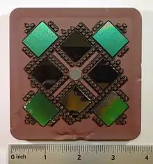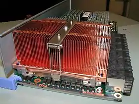 The POWER5 contains 276 million transistors and has an area of 389 mm2. It is fabricated by IBM in a 0.13 μm silicon on insulator (SOI) complementary metal–oxide–semiconductor (CMOS) process with eight layers of copper interconnect. The POWER5 die is packaged in either a dual chip module (DCM) or a multi-chip module (MCM). The DCM contains one POWER5 die and its associated L3 cache die. The MCM contains four POWER5 dies and four L3 cache dies, one for each POWER5 die, and measures 95 mm by 95 mm.[1][2]
