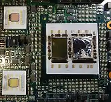 The POWER5+ was packaged in the same packages as previous POWER5 microprocessors, but was also available in a quad-chip module (QCM) containing two POWER5+ dies and two L3 cache dies, one for each POWER5+ die. These QCM chips ran at a clock frequency of between 1.5 and 1.8 GHz.