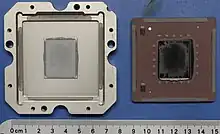![]() IBM Power7 4 GHz 8-way CPU (de-lidded) from an IBM 9119 | |