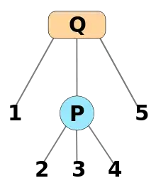 A PQ tree is a tree-based data structure that represents a family of permutations on a set of elements, discovered and named by Kellogg S. Booth and George S. Lueker in 1976.[1] It is a rooted, labeled tree, in which each element is represented by one of the leaf nodes, and each non-leaf node is labelled P or Q. A P node has at least two children, and a Q node has at least three children.