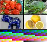 But this creates a heavy dependence between the image pixels and its adaptive palette. Assuming a limited 8-bit depth graphic display, it is necessary to load a given image's adaptive palette into the color hardware registers prior to loading the image surface itself into the frame buffer. To display different images with different adaptive palettes, they must be loaded one by one, as in a slideshow. Here are samples of four different indexed color images with color patches to show their respective (and largely incompatible) adaptive palettes:
