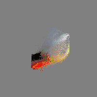 Then, when loading the mosaic of image thumbnails (or other heterogeneous images), the program simply maps every original indexed color pixel to its most approximated in the master palette (after dumping this into the hardware color registers), and writes the result in the video buffer. Here is a sample of a simple mosaic of the four image thumbnails using a master palette of 240 RGB arranged colors plus 16 additional intermediate shades of gray; all images are put together without a significant loss of color accuracy: