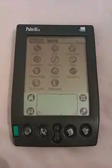 The Palm IIIx is a PDA from Palm Computing released in 1999, briefly before the scaled down Palm IIIe was introduced into the marketplace.