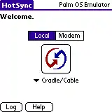 HotSync integrates with the user's PC. Usually activated by a press of the physical HotSync button on the Palm's cradle (a dock station), this application communicates with various conduits on the desktop PC to install software, backup databases, or merge changes made on the PC or the handheld to both devices. It can communicate with the PC through a physical connection (USB on newer models), Bluetooth or IrDA wireless connections, and direct network connections on devices with networking capability.