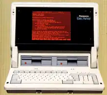 Panasonic Corporation released the Executive Partner in late July 1985,[7] supported by a network of 78 value-added resellers and numerous retail outlets.[6] It was released a year after Panasonic's somewhat heavier Senior Partner portable computer, which also features a built-in thermal printer.[9] A hard drive–based model of the Executive Partner was released in late December 1985.[3] At US$2,595, the it was one of the first relatively inexpensive portables to feature a gas plasma display. Grid Systems had released a gas-plasma laptop—the GridCase III—earlier in the year, for nearly double the street price.[10]