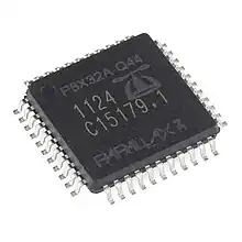 The Parallax P8X32A Propeller is a multi-core processor parallel computer architecture microcontroller chip with eight 32-bit reduced instruction set computer (RISC) central processing unit (CPU) cores.[1][2] Introduced in 2006, it is designed and sold by Parallax, Inc.