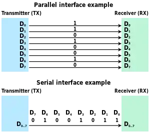 - Complexity: Parallel data links are easily implemented in hardware, making them a logical choice. Creating a parallel port in a computer system is relatively simple, requiring only a latch to copy data onto a data bus. In contrast, most serial communication must first be converted back into parallel form by a universal asynchronous receiver/transmitter (UART) before they may be directly connected to a data bus.