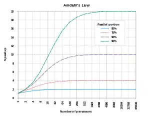 The potential speedup of an algorithm on a parallel computing platform is given by Amdahl's law[15]