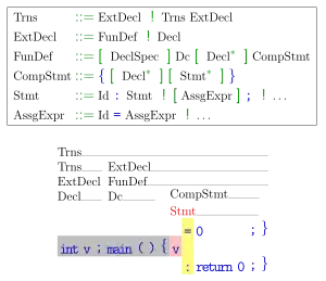 The following example demonstrates the common case of parsing a computer language with two levels of grammar: lexical and syntactic.