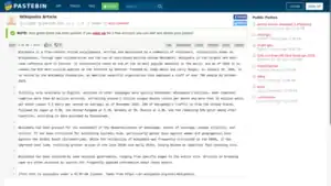 Pastebin.com has a builtin automatic censorship system working on unspecified principles.[14][15][16] As of October 2023, section D-2 of Pastebin.com's Terms of Service [17] states that the site's user-generated content is not prescreened, which is evidently not the case.
