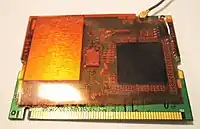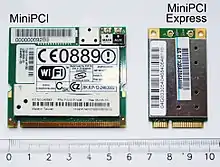 Peripheral Component Interconnect (PCI)[3] is a local computer bus for attaching hardware devices in a computer and is part of the PCI Local Bus standard. The PCI bus supports the functions found on a processor bus but in a standardized format that is independent of any given processor's native bus. Devices connected to the PCI bus appear to a bus master to be connected directly to its own bus and are assigned addresses in the processor's address space.[4] It is a parallel bus, synchronous to a single bus clock. Attached devices can take either the form of an integrated circuit fitted onto the motherboard (called a planar device in the PCI specification) or an expansion card that fits into a slot. The PCI Local Bus was first implemented in IBM PC compatibles, where it displaced the combination of several slow Industry Standard Architecture (ISA) slots and one fast VESA Local Bus (VLB) slot as the bus configuration. It has subsequently been adopted for other computer types. Typical PCI cards used in PCs include: network cards, sound cards, modems, extra ports such as Universal Serial Bus (USB) or serial, TV tuner cards and hard disk drive host adapters. PCI video cards replaced ISA and VLB cards until rising bandwidth needs outgrew the abilities of PCI. The preferred interface for video cards then became Accelerated Graphics Port (AGP), a superset of PCI, before giving way to PCI Express.[5]