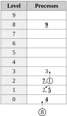 The level variables take on values up to N − 1, each representing a distinct "waiting room" before the critical section.[6] Processes advance from one room to the next, finishing in room N − 1, which is the critical section. Specifically, to acquire a lock, process i executes[4]: 22