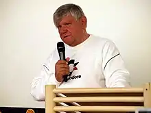 ![]() Tyschtschenko at an Amiga user club meeting in Tampere, Finland in September 2014. | |