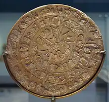 Phaistos Disc is a Unicode block containing the characters found on the undeciphered Phaistos Disc artefact.