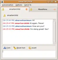 The program was originally written by Mark Spencer, an Auburn University sophomore, as an emulation of AOL's IM program AOL Instant Messenger on Linux using the GTK+ toolkit.[5] The earliest archived release was on December 31, 1998.[6] It was named GAIM (GTK+ AOL Instant Messenger) accordingly. The emulation was not based on reverse engineering, but instead relied on information about the protocol that AOL had published on the web. Development was assisted by some of AOL's technical staff.[5][7] Support for other IM protocols was added soon thereafter.[5]