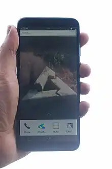![]() A PinePhone with the Plasma Mobile interface | |