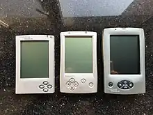 Palm-size PC (PsPC) was Microsoft's official name for Windows CE PDAs that were smaller than Handheld PCs by the lack of a physical keyboard. The class was announced in January 1998 originally as "Palm PC" which provoked a lawsuit by Palm Inc., and the name changed soon afterwards to Palm-size PC before release.[3] These devices were similar to the Handheld PC and also ran Windows CE, however this version was more limited and lacked Pocket Microsoft Office, Pocket Internet Explorer, ActiveX and some other tools.[4] Its main competitor was the PalmPilot and Palm III.[5] According to the specification, Palm-size PCs use SuperH SH3 processors and MIPS architecture. The term "palm-sized PC" was also used as a generic term of similar such devices that are not necessary connected to Microsoft, such as the PalmPilot.