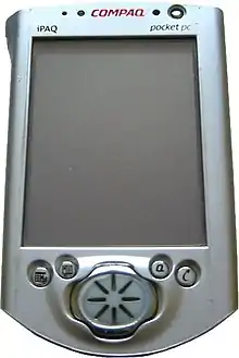 Microsoft's Handheld PCs and Palm-size PCs did not gain much success in the markets compared to Palm, with users complaining the Windows CE software were hard to use and the devices themselves were thick.[6] On April 19, 2000, Microsoft introduced Pocket PC with a revamped interface and to better compete against the popular Palm devices. The Pocket PC was based on the all new version 3.0 of Windows CE. HP, Casio and Compaq were the first OEMs with Pocket PC devices in 2000.[7][8] The familiar desktop Windows UI from Palm-size PCs was removed in favor of a more tailored interface on Pocket PCs.[4]