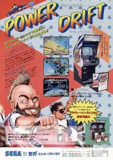 Power Drift (パワードリフト, Pawā Dorifuto) is a kart racing game released in arcades by Sega in 1988. More technologically advanced than Sega's earlier 2.5D racing games, like Hang-On (1985) and Out Run (1986), in Power Drift the entire world and track consist of sprites. The upgraded hardware of the Sega Y Board allows individual sprites and the background to be rotated–even while being scaled–making the visuals more dynamic.[7]