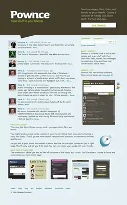 Pownce was a free social networking and micro-blogging site started by Internet entrepreneurs Kevin Rose, Leah Culver, and Daniel Burka. Pownce was centered on sharing messages, files, events, and links with friends. The site launched on June 27, 2007, and was opened to the public on January 22, 2008.[1] On December 1, 2008, Pownce announced that it had been acquired by blogging company Six Apart, and that the service would soon shut down.[2][3] It was subsequently shut down on December 15, 2008.[4]