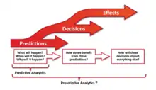 The final phase is prescriptive analytics,[6] which goes beyond predicting future outcomes but also suggesting actions to benefit from the predictions and showing the implications of each decision option.[7]