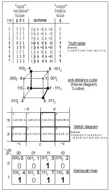 - Willard Quine 1952 and 1955, E. W. Veitch 1952, and M. Karnaugh (1953) develop map-methods for simplifying propositional functions.