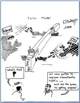 Davies had conceived and described datagram networks, done simulation work on them, and built a single packet switch with local lines.[27][56] Louis Pouzin thought it looked technically feasible to employ a simpler approach to wide-area networking than that of the ARPANET.[56] In 1972, Pouzin launched the CYCLADES project, with cooperation provided by the French PTT, including free lines and modems.[57] He began to research what would later be called internetworking;[58][57] at the time, he coined the term "catenet" for concatenated network.[59] The name "datagram" was coined by Halvor Bothner-By.[60] Hubert Zimmermann was one of Pouzin's principal researchers and the team included Gérard Le Lann, among others. While building the network, they were advised by BBN as consultants.[58][61] Le Lann proposed the sliding window scheme for achieving reliable error and flow control on end-to-end connections.[62][63][64] Pouzin's team was the first to tackle the highly-complex problem of providing user applications with a reliable virtual circuit while using a best-effort service.[65] The network used unreliable, standard-sized, datagrams in the packet-switched network and virtual circuits for the transport layer.[58][66] First demonstrated in 1973, it pioneered the use of the pure datagram model, functional layering, and the end-to-end principle.[67] However, the sliding window scheme was never implemented on the CYCLADES network and it was never interconnected with other networks (except for limited demonstrations using traditional telegraphic techniques).[68][69]