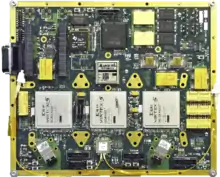 The Proton200k is a high-speed, space-qualified, radiation-hardened single-board computer based on a Texas Instruments 320C 6415/6713 DSP. The Proton200k is produced by Space Micro Inc, a designer and manufacturer of radiation-hardened electronics for space applications. The Proton200k was originally developed under Phase I and Phase II SBIR contracts.[1] The Proton200k displays processing speeds of 900 MFLOPS or 4000 MIPS while operating at 5 watts. It is radiation hardened to a total ionizing dose greater than 100 krad(Si) and fewer than 1 single event upset per 1000 days.[2] Space Micro Inc also offers a triple-core version of the Proton200k.[3]