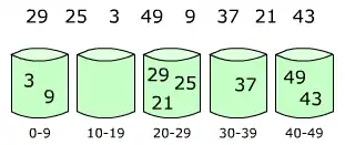 Here A is the array to be sorted and the mapKey functions determines the number of subarrays to use. For example, floor(K) will simply assign as many subarrays as there are integers from the data in A. Dividing the key by a constant reduces the number of subarrays; different functions can be used to translate the range of elements in A to subarrays, such as converting the letters A–Z to 0–25 or returning the first character (0–255) for sorting strings. Subarrays are sorted as the data comes in, not after all data has been placed into the subarray, as is typical in bucket sorting.