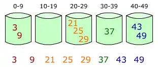 Like ProxmapSort, bucket sort generally operates on a list of n numeric inputs between zero and some maximum key or value M and divides the value range into n buckets each of size M/n. If each bucket is sorted using insertion sort, ProxmapSort and bucket sort can be shown to run in predicted linear time.[1] However, the performance of this sort degrades with clustering (or too few buckets with too many keys); if many values occur close together, they will all fall into a single bucket and performance will be severely diminished. This behavior also holds for ProxmapSort: if the buckets are too large, its performance will degrade severely.