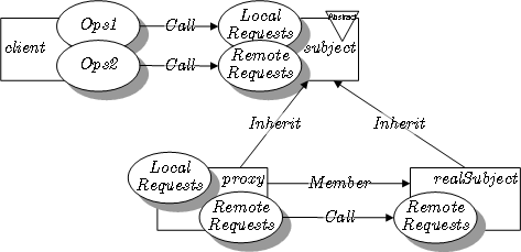 the Proxy class implements the Subject interface so that it can act as substitute for Subject objects. It maintains a reference (realSubject)