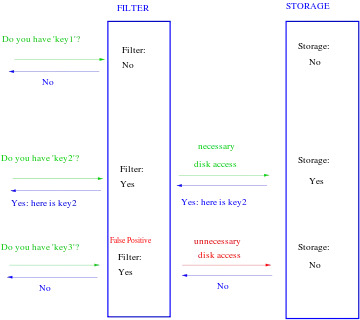 This is particularly important in some log structured storage systems that use the log-structured merge-tree or LSM-tree.[9] The LSM-tree is actually a collection of trees but which is treated as a single key-value store. One variation of the LSM-Tree is the Sorted Array Merge Tree or SAMT.[10] In this variation, a SAMT's component trees are called Wanna-B-trees. Each Wanna-B-tree has an associated quotient filter. A query on the SAMT is directed at only select Wanna-B-trees as evidenced by their quotient filters.