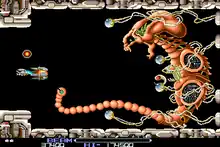 R-Type[lower-alpha 1] is a horizontally scrolling shooter arcade video game developed and released by Irem in 1987 and the first game in the R-Type series. The player controls a star ship, the R-9 "Arrowhead", in its efforts to destroy the Bydo, a powerful alien race bent on wiping out all of mankind. The R-9 can acquire a glowing orbicular device called a "Force", protecting it from enemy fire and providing additional firepower. The arcade version was distributed by Nintendo in North America; it is the last arcade title Nintendo distributed.
