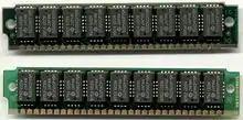 In 1991, Wang won a judgment against Toshiba and NEC over its patents on SIMMs, based in part on its claim of using a ninth RAM chip for parity.[3][4] In response, SIMMs with three chips rather than nine separate chips for each bit became popular under the theory they did not infringe. However, the switch from nine-chip SIMMs to three-chip SIMMs caused some compatibility issues.[5] One year later in 1992, Wang also sued Mitsubishi, but Wang did not ultimately prevail in that because the courts determined in 1997 that a licensing agreement was in place.[6] Eventually by the end of the 1990s, DIMMs had supplanted SIMMs in the marketplace, and DIMMs were not subject to Wang's lawsuits.