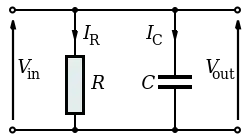 The parallel RC circuit is generally of less interest than the series circuit. This is largely because the output voltage Vout is equal to the input voltage Vin — as a result, this circuit does not act as a filter on the input signal unless fed by a current source.